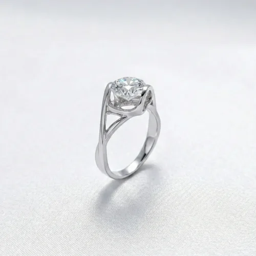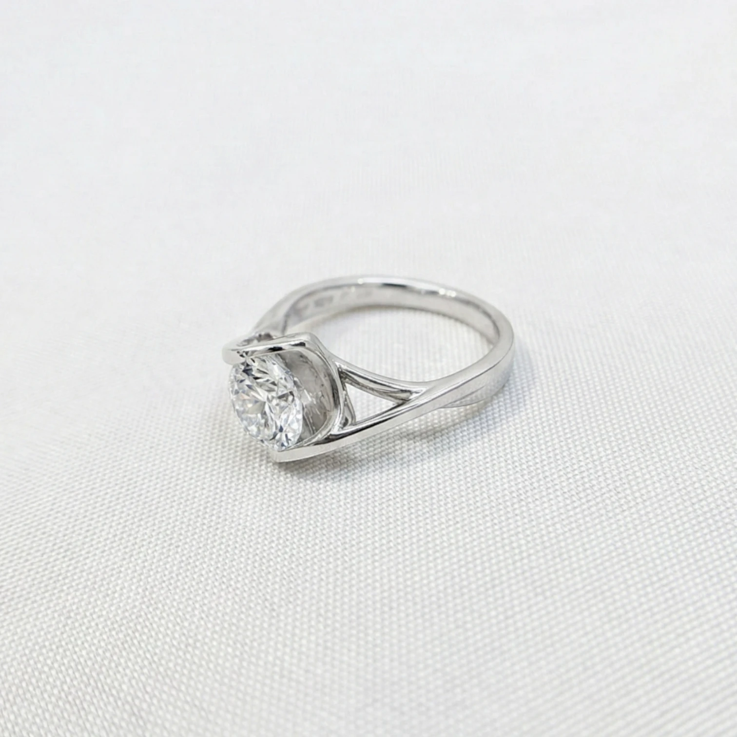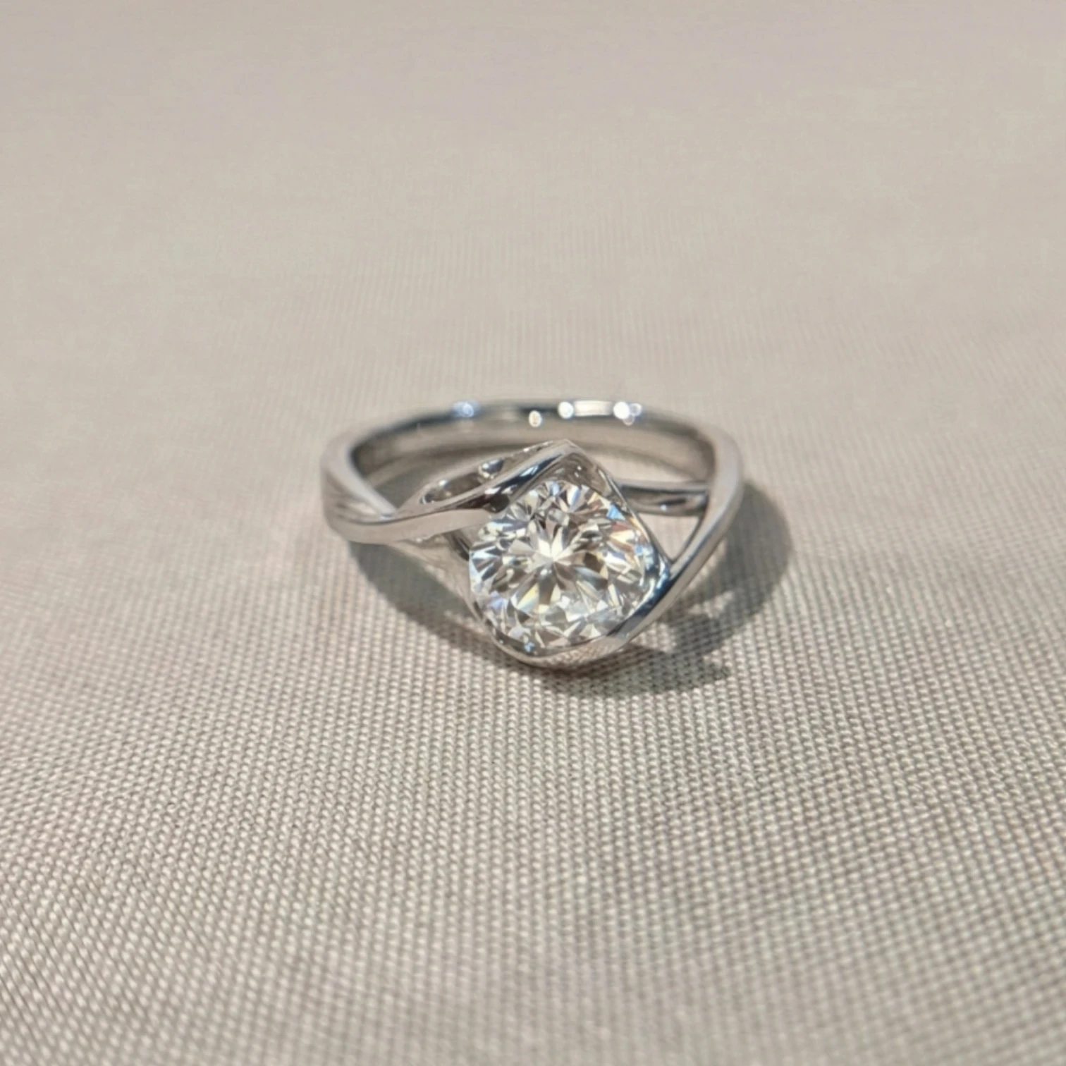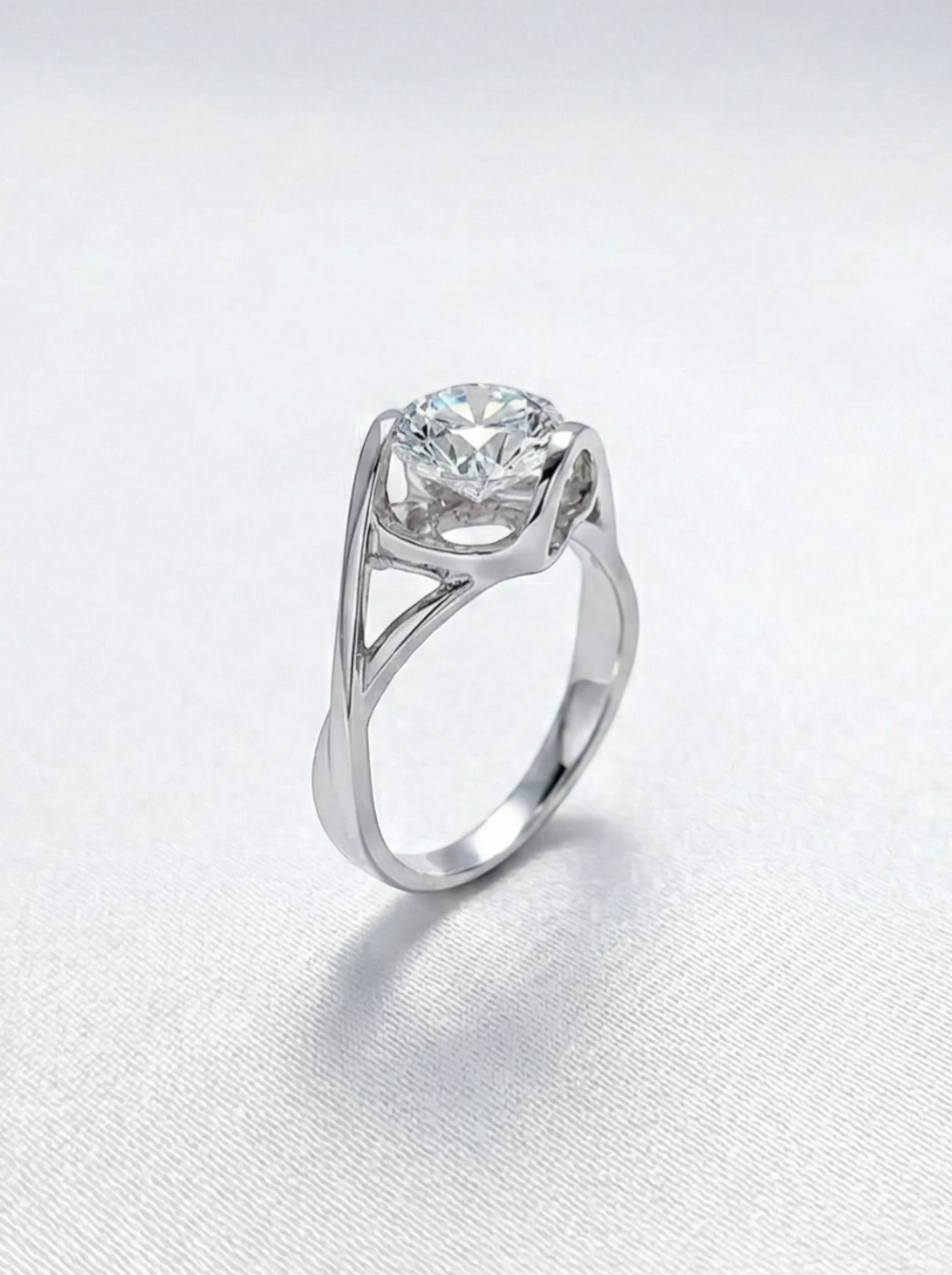 Return To Shop以流暢的線條交織出獨特的立體感。戒指採用創新的四爪鑲嵌結構:頂部呈現菱形幾何美感,側面隱藏愛心形鏤空設計。