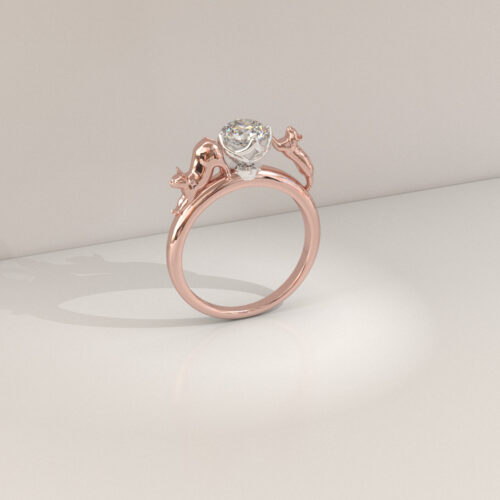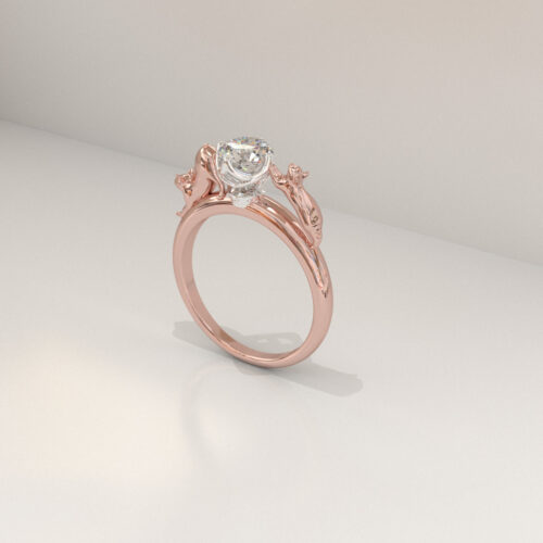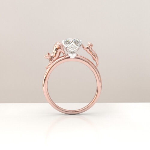 A ring designs composed of two cats with different posture, set with a carat weight dazzling diamond.